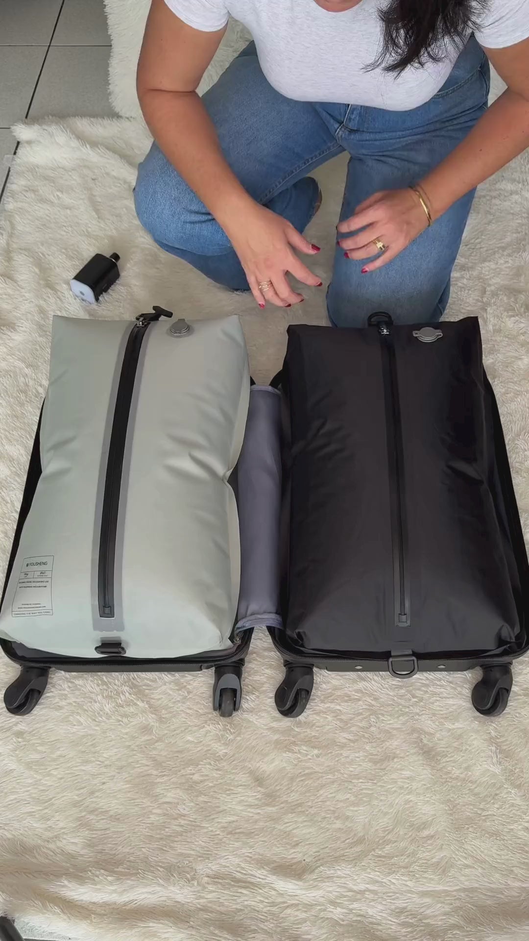 Nos sacs utilisent un système de compression sous vide avec pompe, 100% hermétique et indéchirable. Vous gagnez jusqu’à 3x plus de place dans vos bagages.